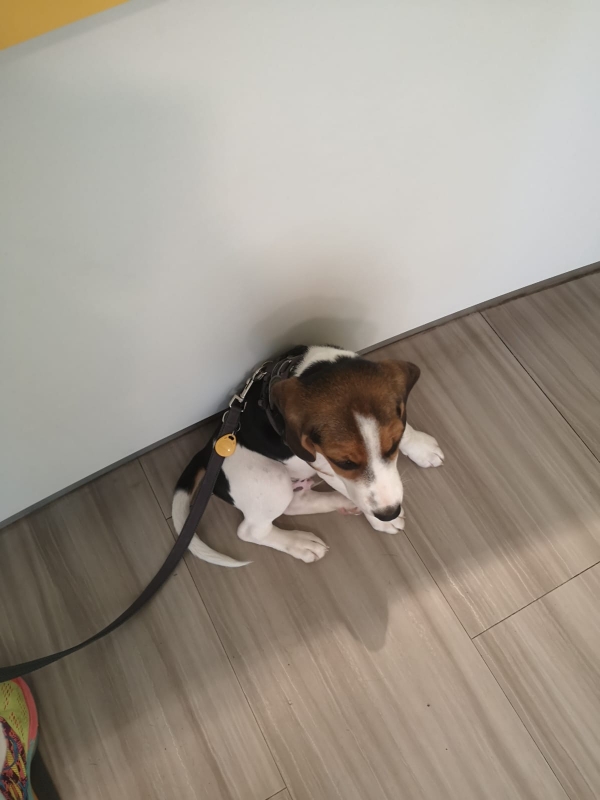 Verdutzt bleibe ich erst mal sitzen und will kein Stück weiter. Susi lockt mich mit Leckerli an die Anmeldung und erledigt den Schriftkram, also das ist hier nicht schön, so laut und die vielen Tiere mit Ihren Menschen, am liebsten will ich gar nicht weiter, aber die Leckerlis lotsen mich an den anderen Wesen vorbei und ein Mann sagt lachend zu Susi "der Kleine will ja gar nicht raus", da stimmt ja nicht so ganz, ich habe mich nur nicht an den anderen vorbei getraut.