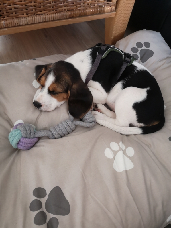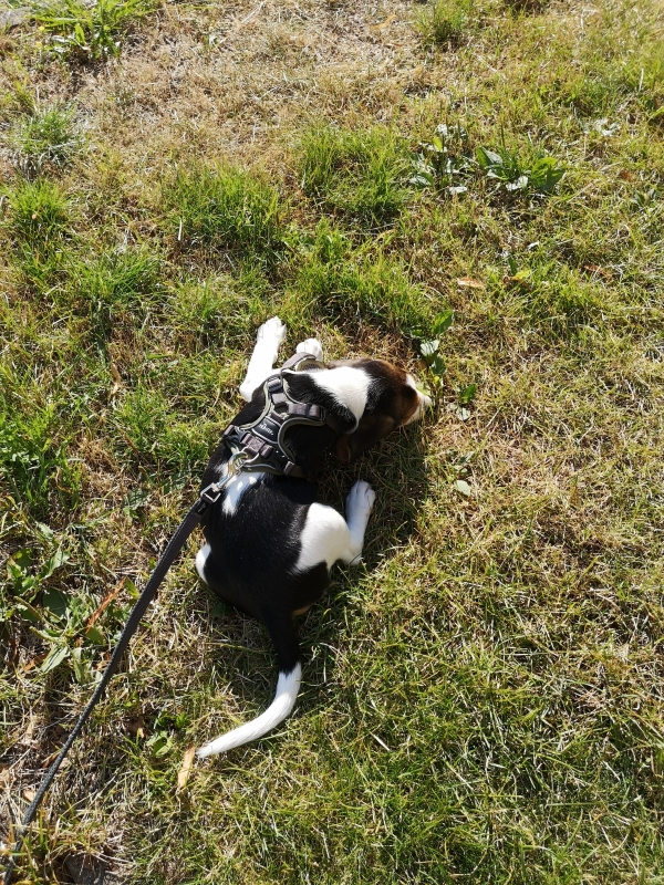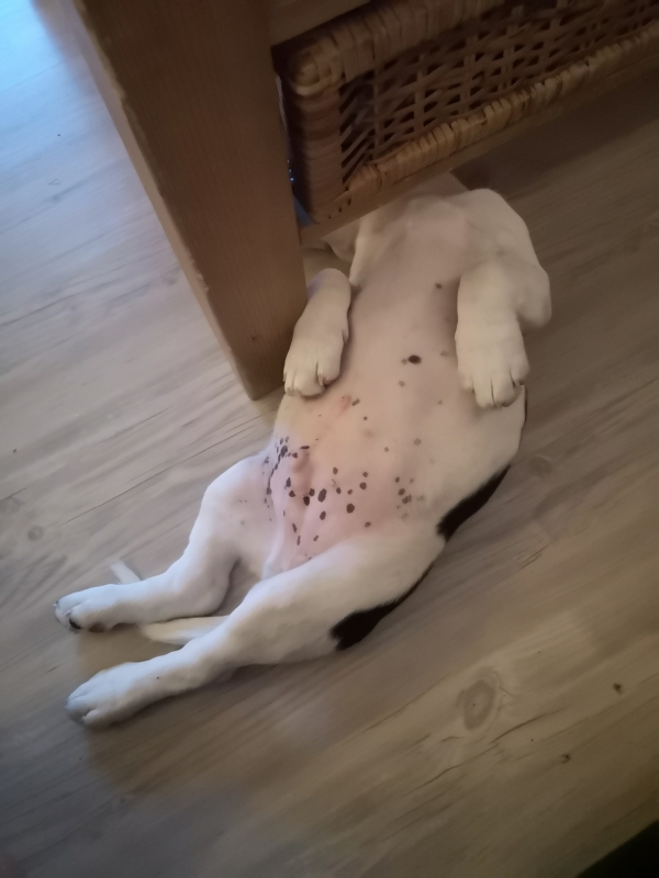 Ab und zu mache ich noch in die Wohnung. Sie schimpfen aber nicht mit mir und sagen nur:"Mist nicht richtig aufgepasst". Dann wuseln die beiden hier herum, mit Flaschen und Tüchern, das ist ziemlich lustig. Aber meistens klappt das schon, dass sie genau erkennen, wann ich rausmuss.