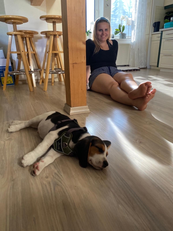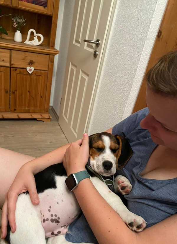 Am Abend des 1. Tages im neuen Zuhause, die Wohnung wurde ausgiebig erkundet durch Paul, kam schon der erste Besuch. Unsere jüngste Tochter Franziska wollte ihn sehen, knuddeln und mit ihm spielen. Paul war natürlich sehr neugierig und freute sich sehr. Franziska hat eben ein gutes Gespür für Tiere.