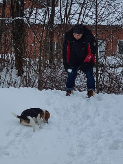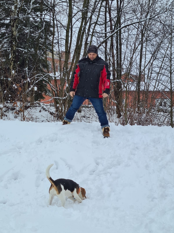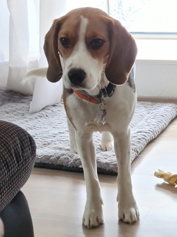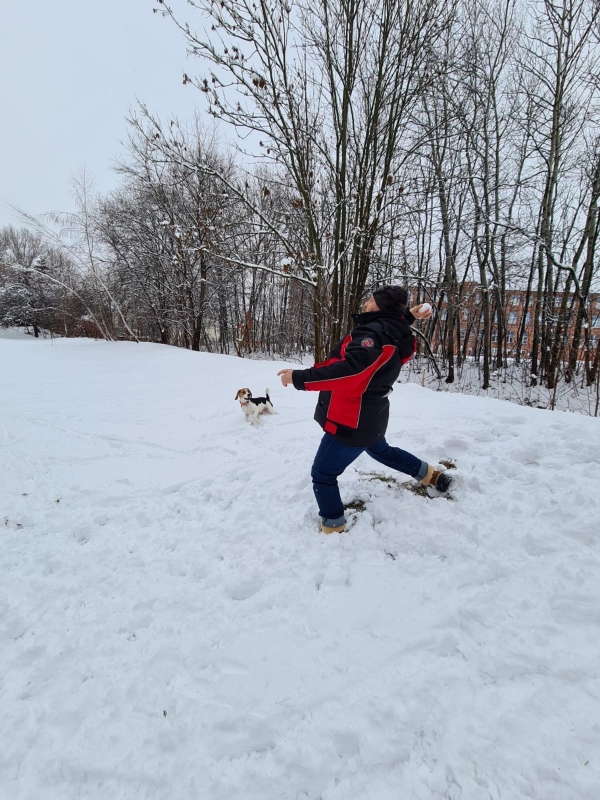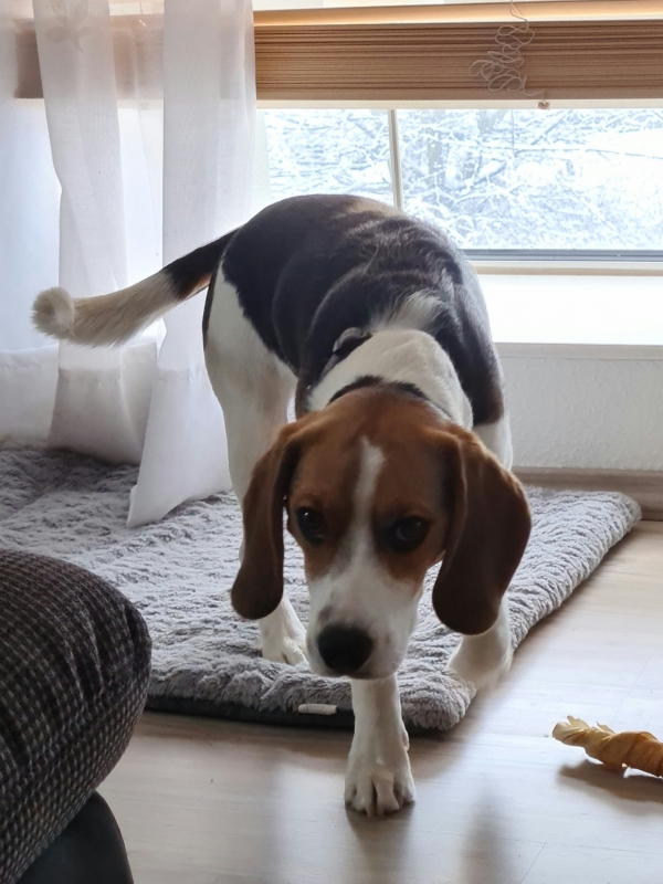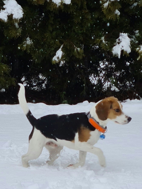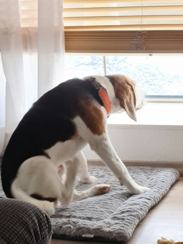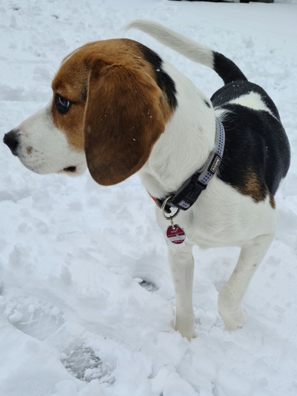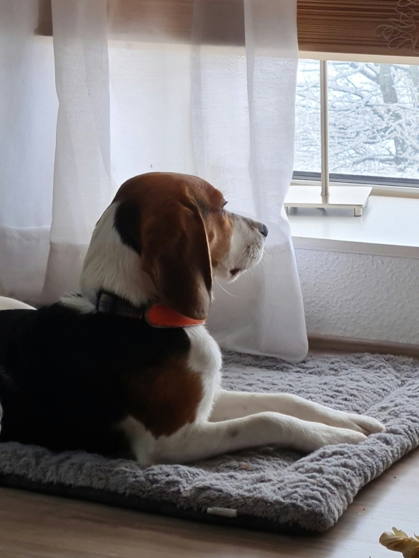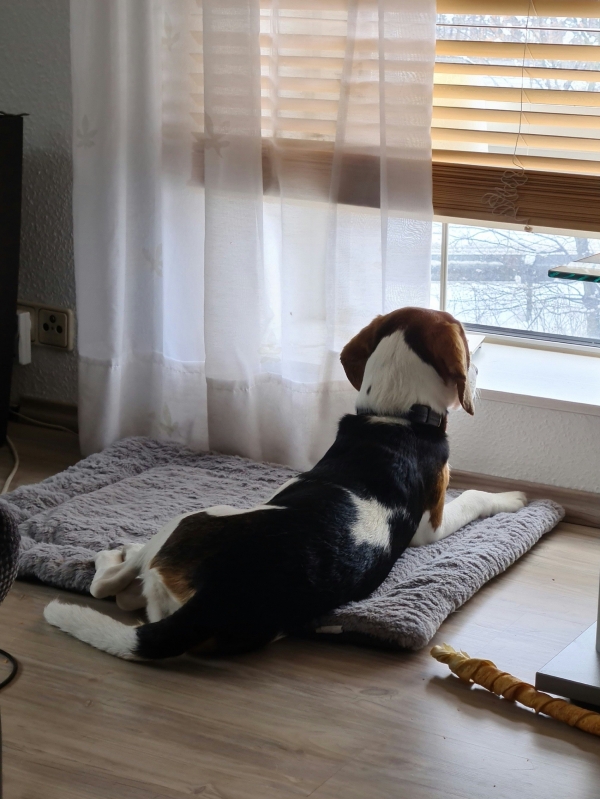 Wenn er träumt, dann wahrscheinlich vom Schnee und wenn er wach ist und wir nicht draußen sind,