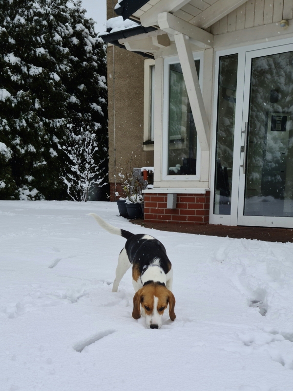 Er frisst den Schnee und wälzt sich darin herum und schiebt seine Schnauze immer unter die Schneedecke beim Laufen, wie ein Staubsauger. Seine Ausgelassenheit und seine Lebensfreude sind so schön anzuschauen und ist natürlich ansteckend:-).