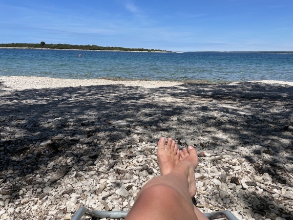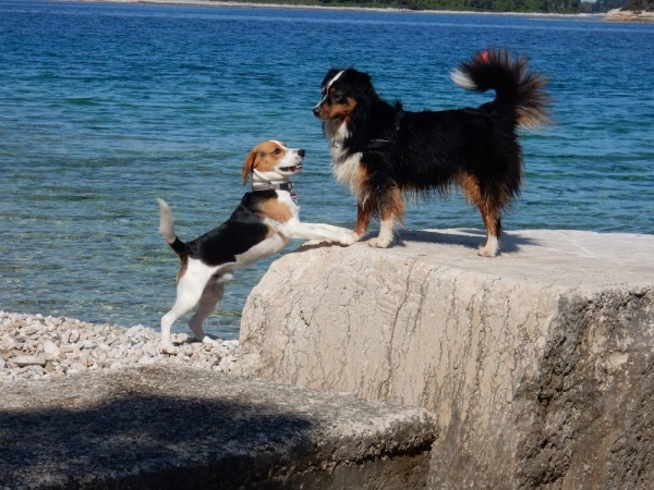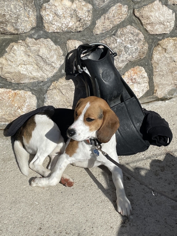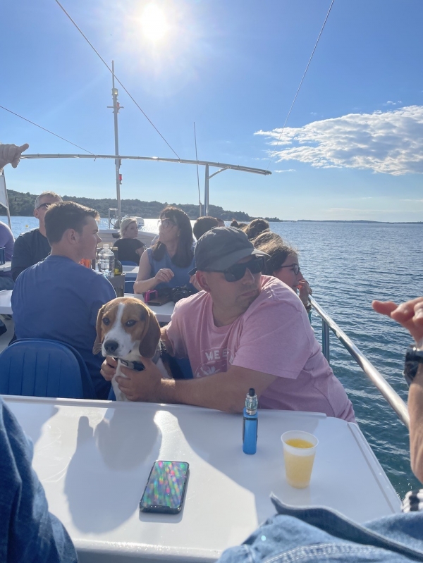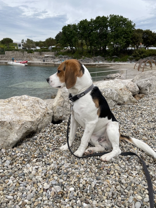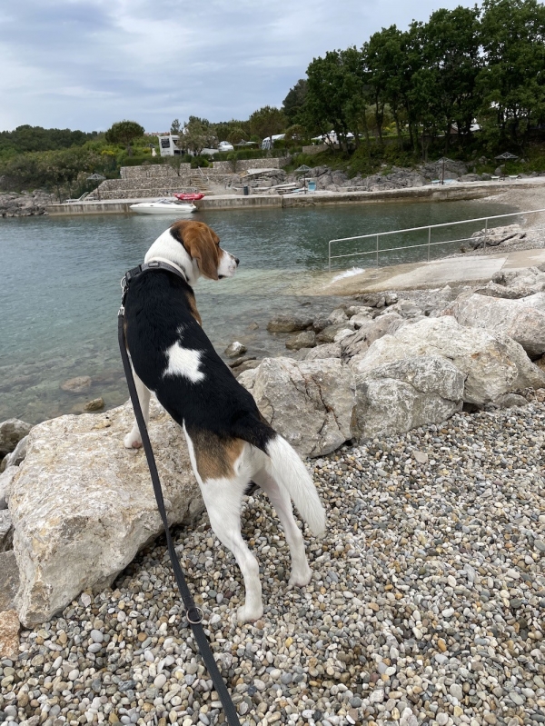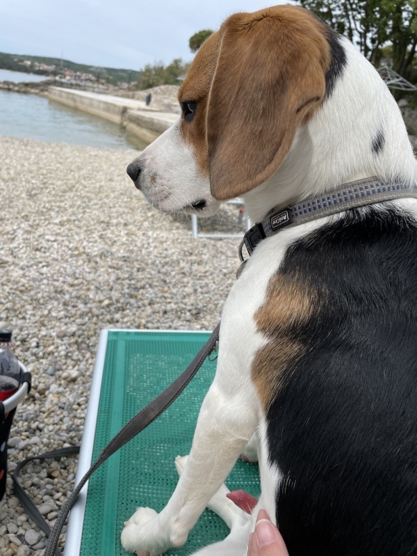 Wir sind noch 2x in Kroatien umgezogen, von KRK, nach PULA und danach weiter nach VRSAR. Von morgens bis abends waren wir an der frischen Luft, ich warte lieb mit Susi auf Kai, wenn er taucht, wir machen Tagesausflüge wenn kein Tauchen ist (z. B. mit der Fähre nach CRES, ich war erst skeptisch, aber dann entspannt, 3 Bootsausflüge, Städtetouren), wir spazierten Kilometer Lang und besuchten viele Städtchen, immer war ich brav. Am liebsten ist es mir, wenn die ganze Meute zusammen ist und ich abends unter dem Tisch liege und entspannt ruhen kann. Es gab einen Musiker in einer Gaststätte, wenn dieser live gesungen hat und seine Musik dazu gespielt hat, habe ich immer zu zittern angefangen und wollte ganz schnell weg, ich weiß auch nicht warum. Also Livekonzerte sind wohl nichts für mich, Susi singt irgendwie besser:-)